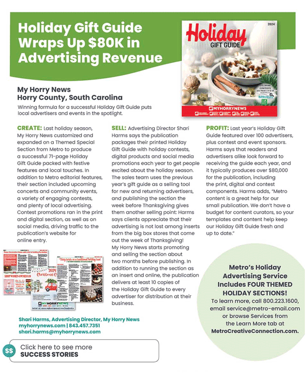 - Print and digital marketing promotions for selling holiday ads and special section spots